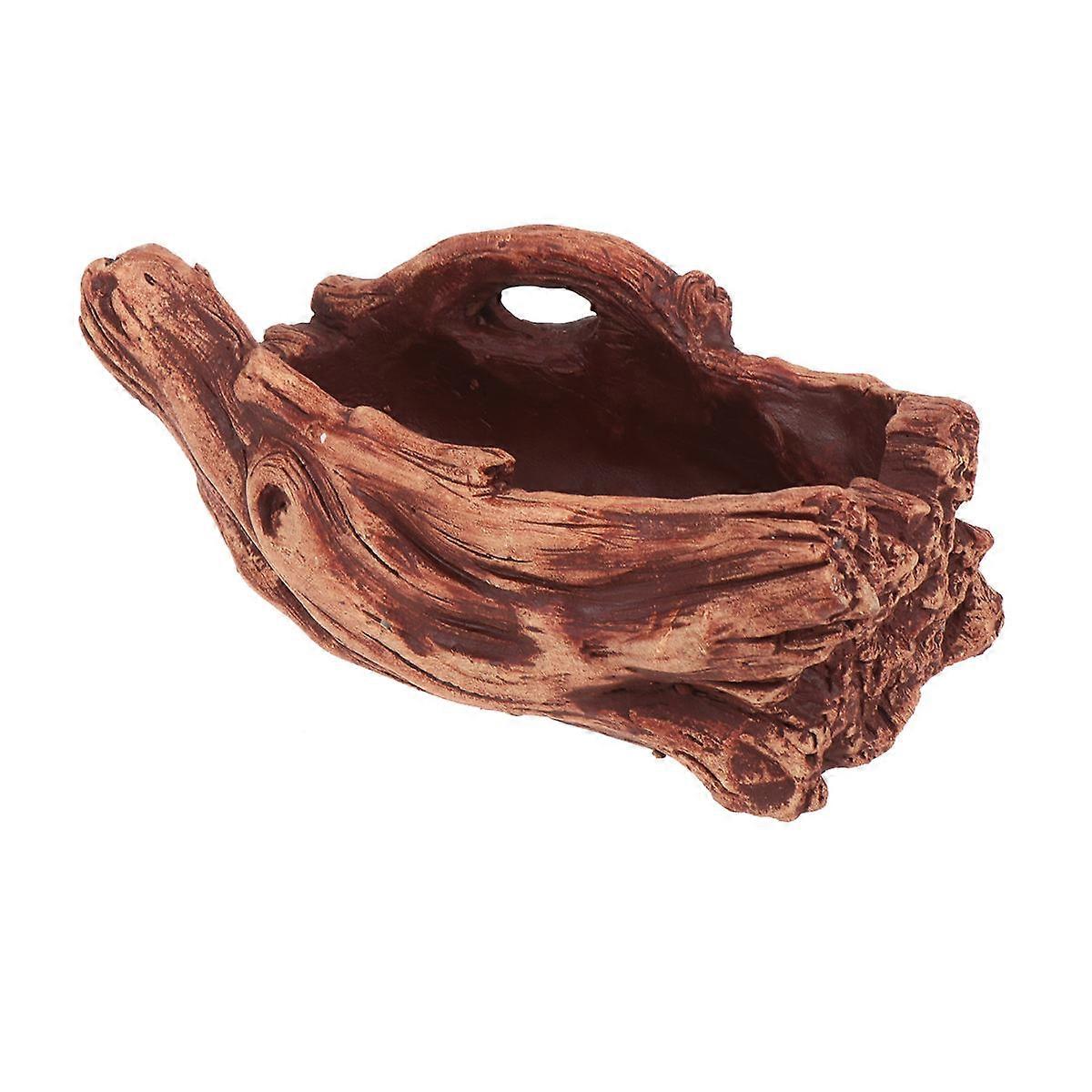 Planter Decoration Pot Wood Stump Root Shape Leakproof Cement Brown Garden Supplies 7.9×3.9×3.1in 1Pcs