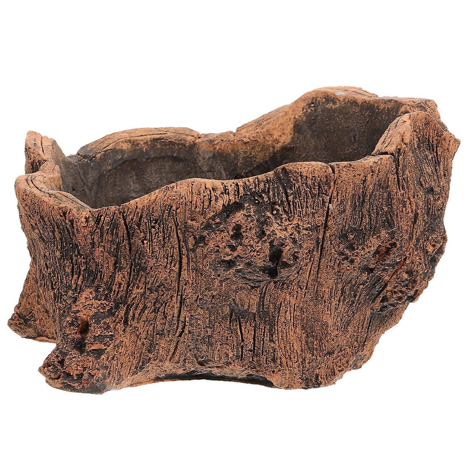 Light Brown Cement Planter with Imitation Wood Design for Storage and Organization 7.5 x 6.3 x 5.1 inches