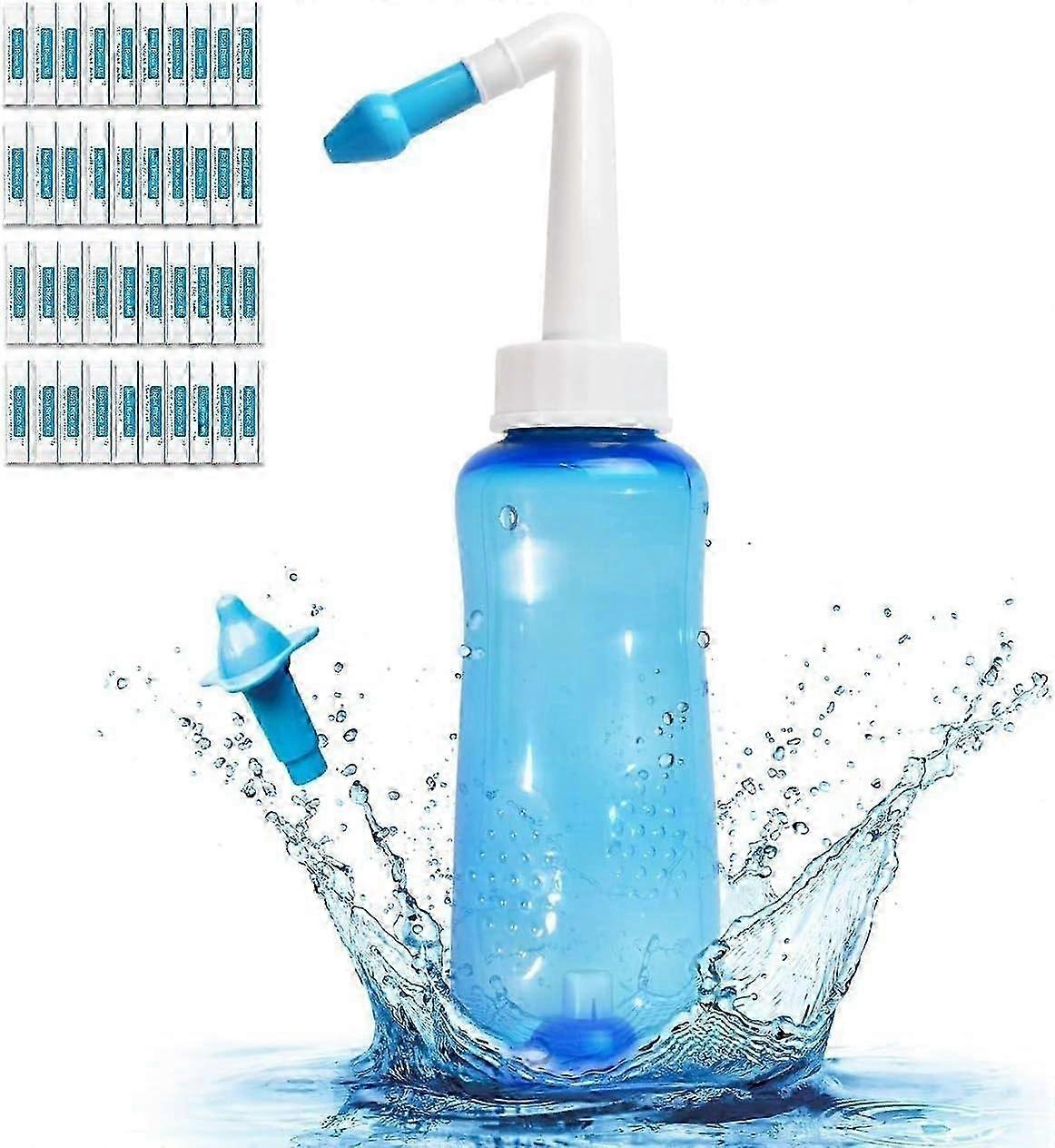Nasal Rinse Bottle Nasal Wash Nose Cleaner for Sinus Pressure Rinse Neti-Pot for Adult & Kid BPA Free (300 ML with 40 Nasal Wash Salt Packets )