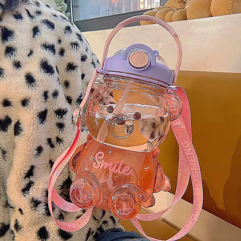 Bear Water Bottle With Straw Strap Kids Bottles Summer Large Capacity Milk Cup