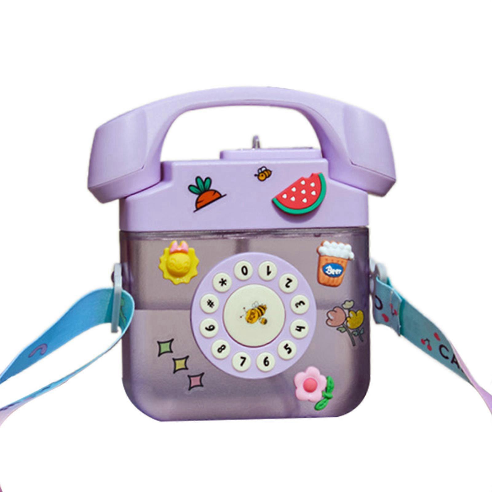 Telephone Water Bottle with Straw Kids Water Bottle with Strap Portable Plastic Drinking Bottle Aesthetic Water Bottle Purple