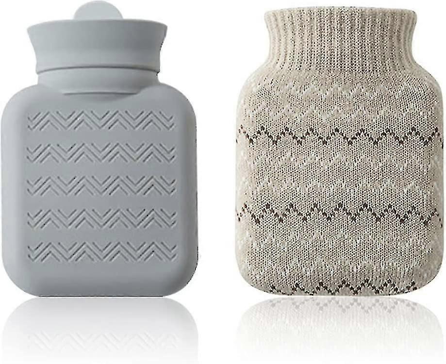 Reusable Mini Hot Water Bottle with Knitted Cover for Pain Relief & Hand Warmers, Microwave Heated