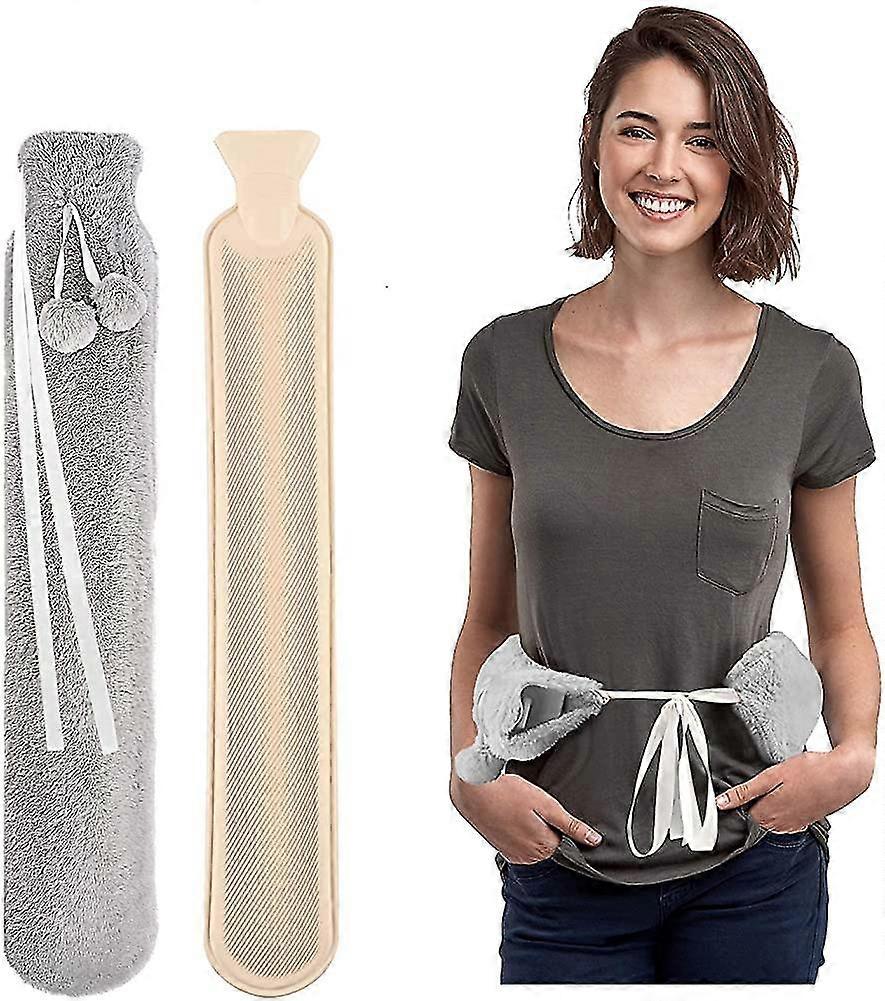 Long Hot Water Bottle With Soft Plush Cover, Long Portable Belts To Attach To The Neck