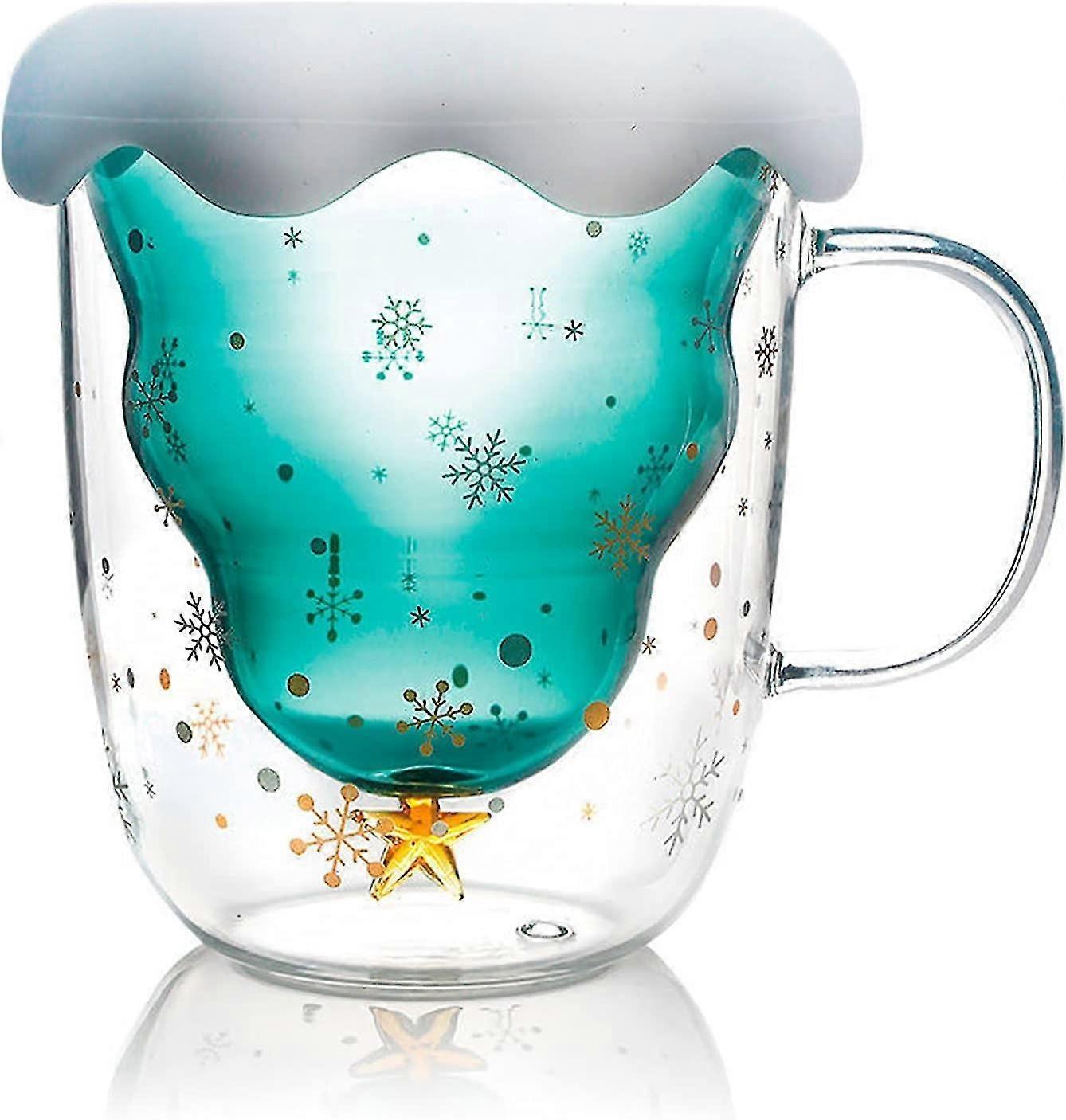 About this item High quality materials - double glass coffee cups are made of high borosilicate glass and silicone materials, which have high strength and hardness, good light transmission, high temperature resistance and easy cleaning. Christmas tree design - Christmas coffee cups are decorated with dots and snowflakes of various sizes. The inner glass is a blue Christmas tree, with a golden star on the top of the tree, which is very delicate and beautiful. Double insulated glass - The Christmas tree espresso cup adopts a double insulated design. The double insulated glass will not freeze hands when putting cold drinks, burn hands when putting hot drinks, and the water vapor generated will not wet the table. No roller coaster is required. Bottom air hole - there is a small hole at the bottom of the heat-resistant coffee cup to ensure the balance of internal and external air pressure of the glass cup with double glass structure and ensure safe use. Widely used - Christmas glasses have a white silicone cover, which can prevent dust, and can also be used to keep the temperature inside the glass. Glass milk cup with cover is suitable for making coffee, milk, hot cocoa, tea and various drinks. Capacity: 301-400ml