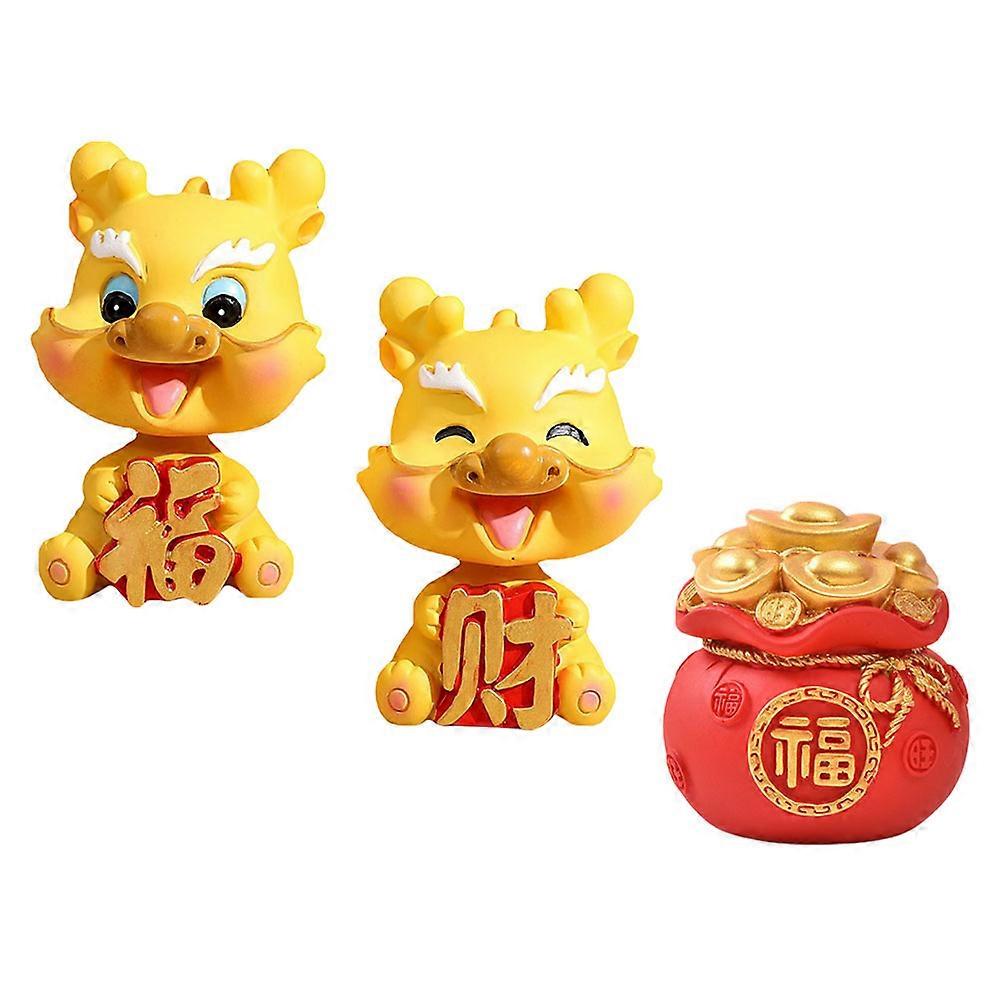 Chinese Style Dragon Ornament 3Pcs Dragon Shape Car Decoration Year of Dragon Festival Decoration