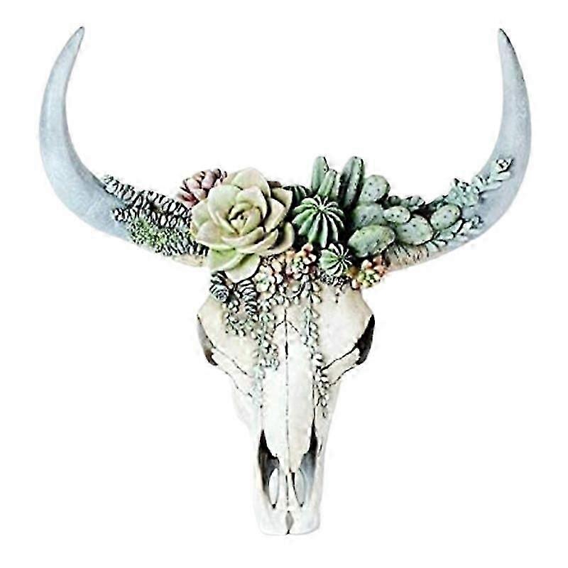 Wall Ornament Beautiful Decorative Resin Succulent/Flower Cow Skull Hanging Pendant for Room
