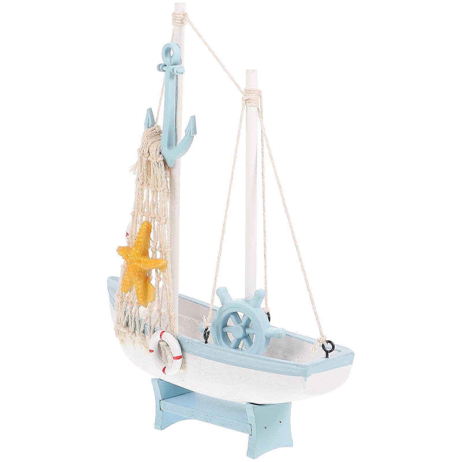 Wooden Sailboat Decoration, Mediterranean Style Nautical Home Office Accent, Inspired Tabletop Model with Base