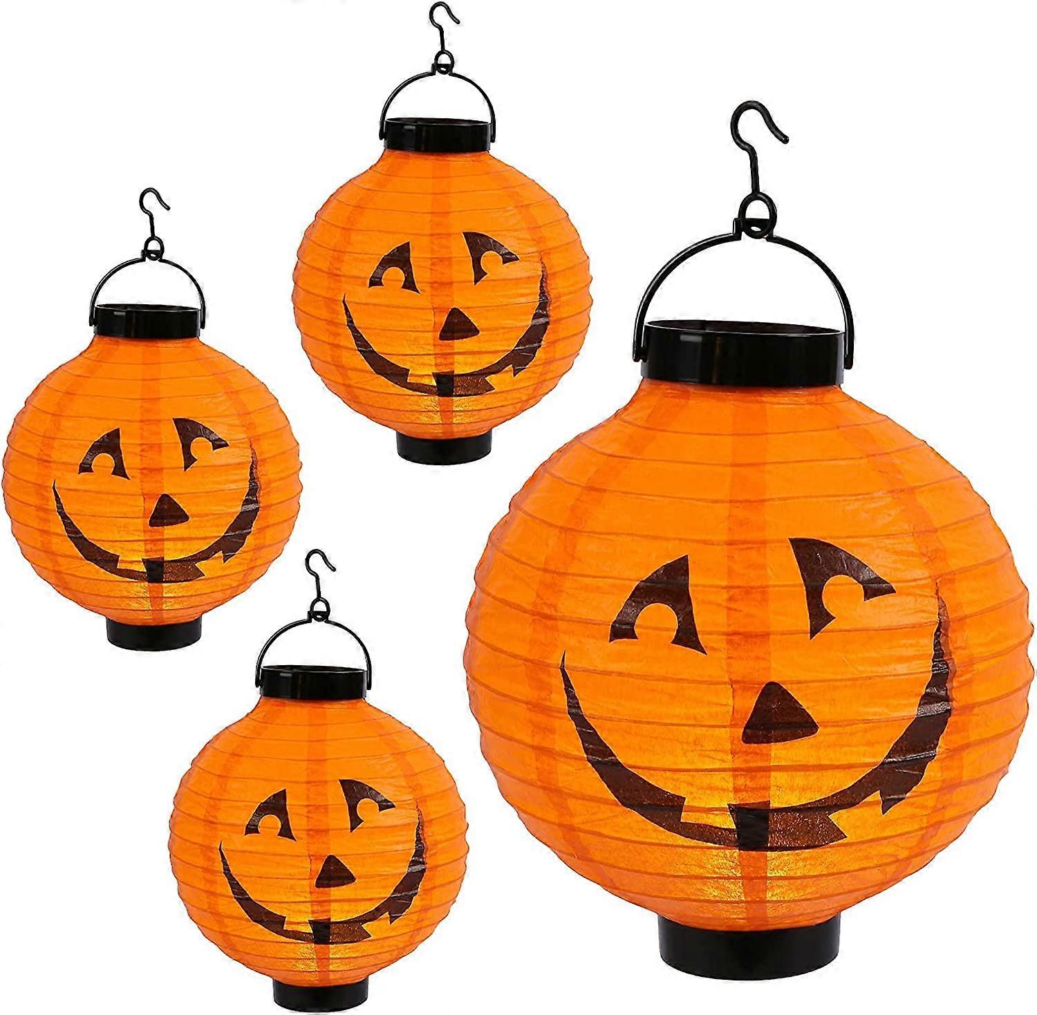 Holy Day Decoration, 4 Pieces Battery Powered Orange Pumpkin Paper Lanterns (Included), Halloween Jack-O-Lantern Lights