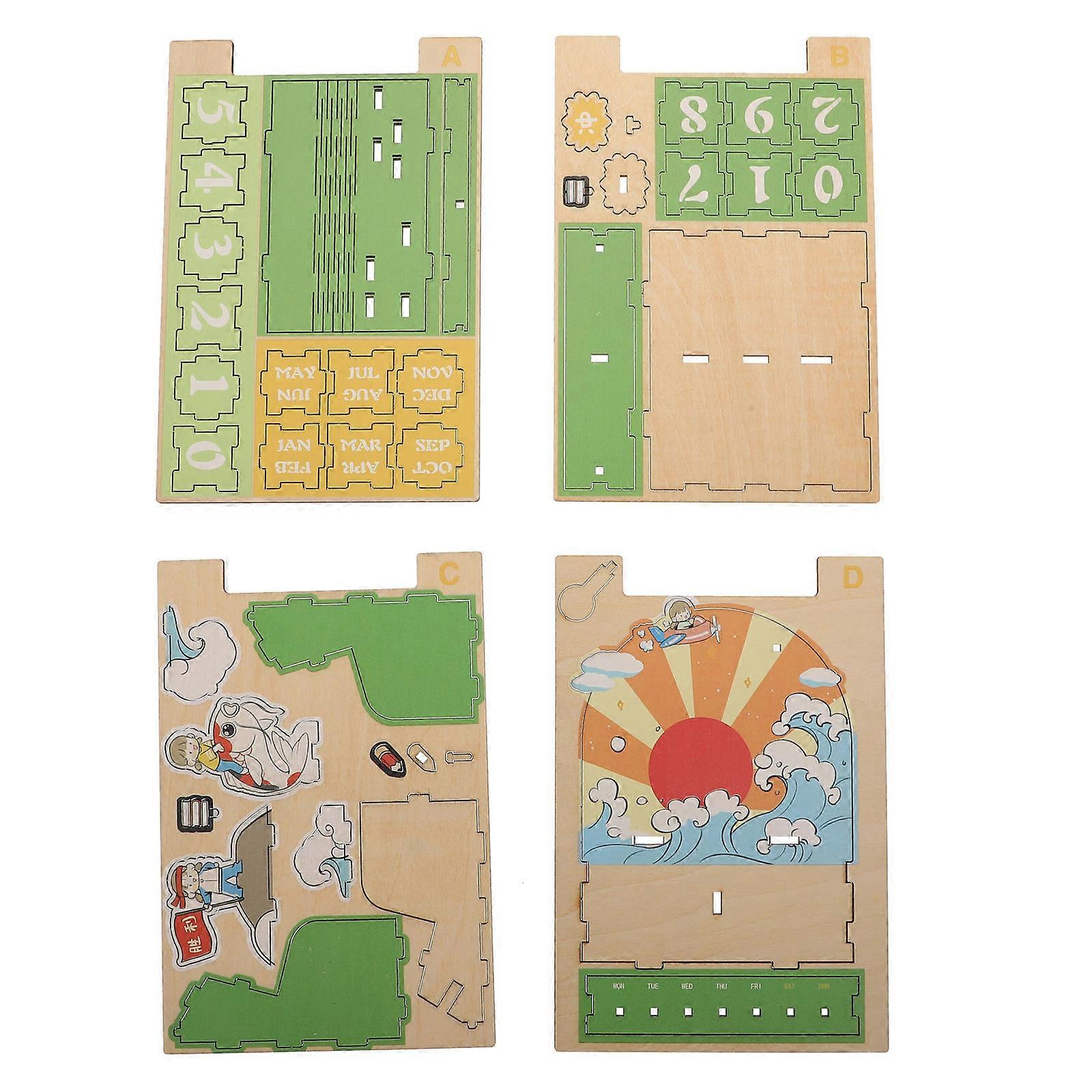 Wooden Calendar Decoration For Home Office Living Room Children's Room Simple Style 10.4X9CM 1Pcs