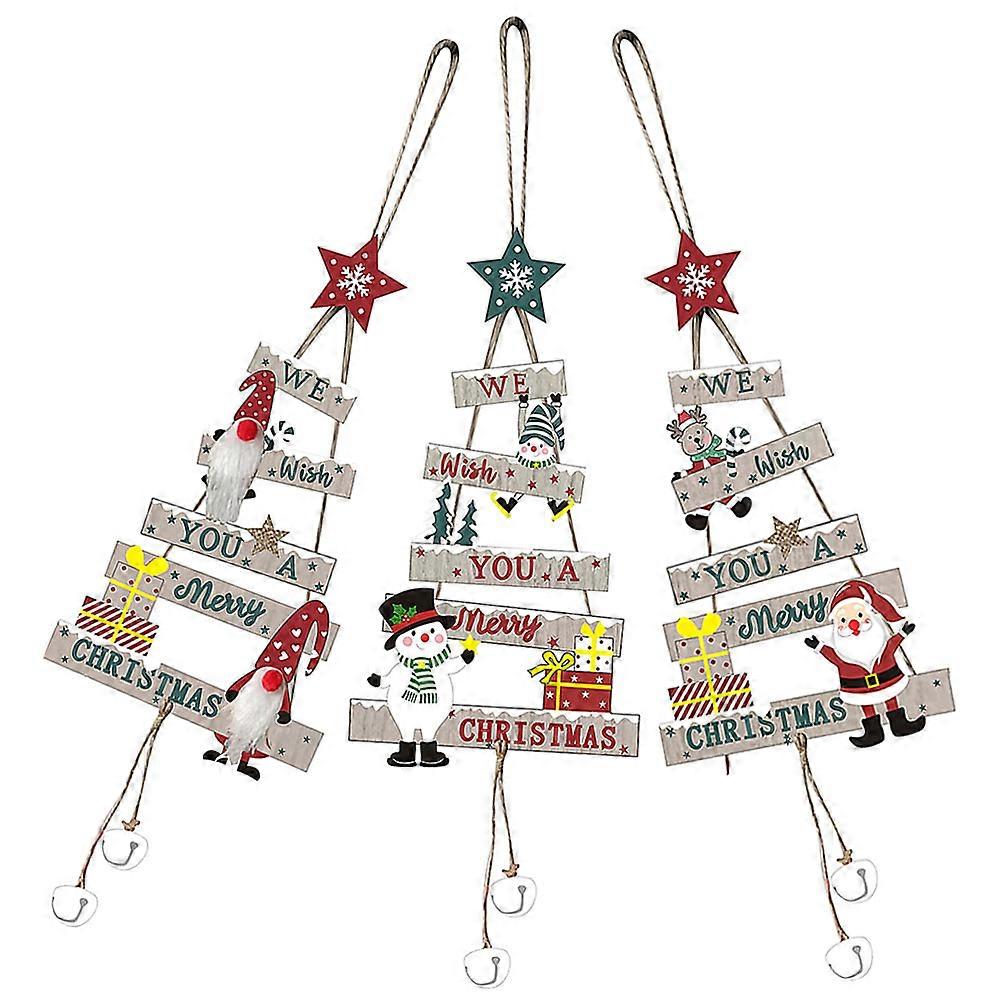 Wooden Christmas Themed Decoration 3Pcs Ornaments For Tree Home Office Decorations 14.6X4.6X0.2In Assorted Color Hanging