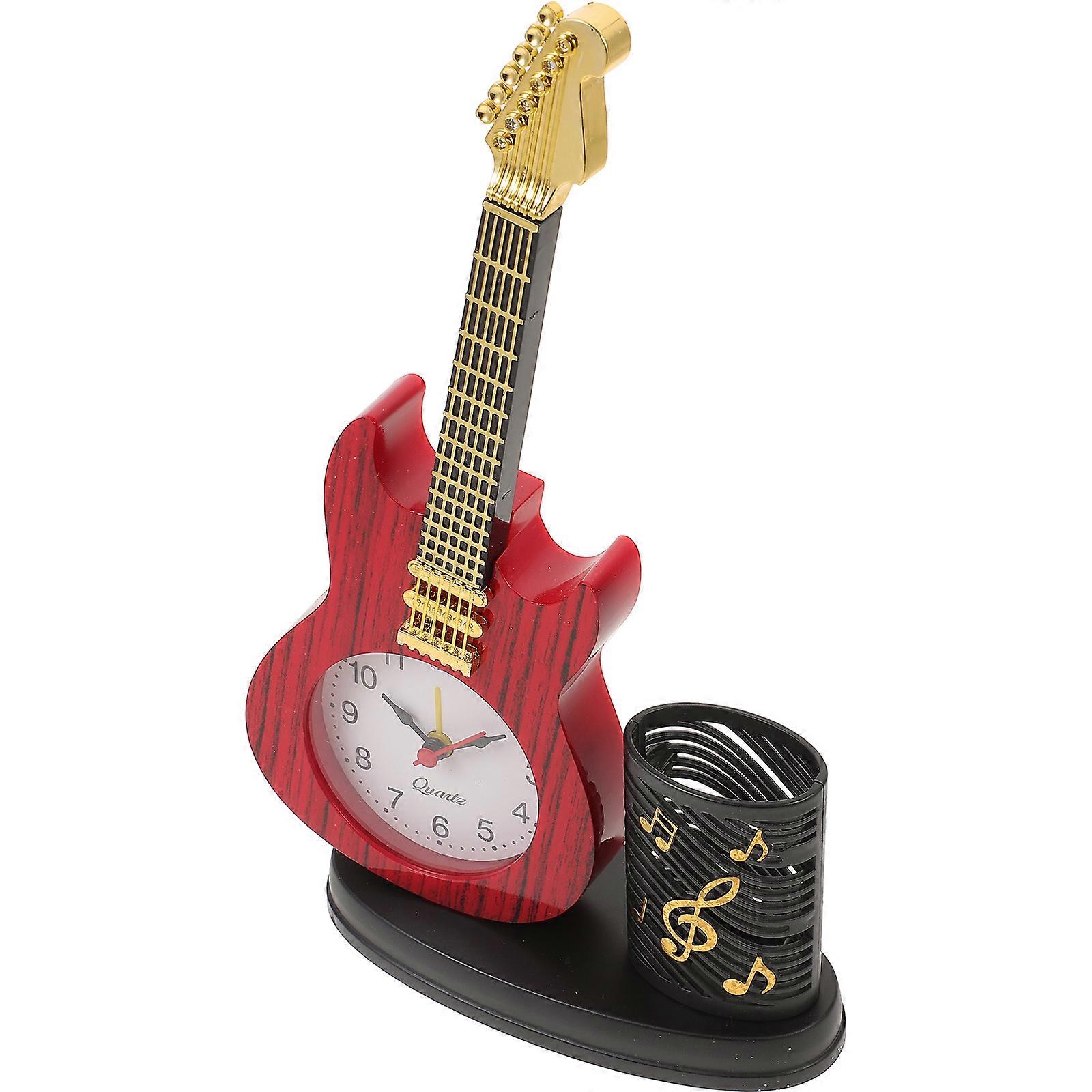 Violin Clock Decoration With Pen Holder For Study Room Multi Color Creative Alarm Design 1Pcs