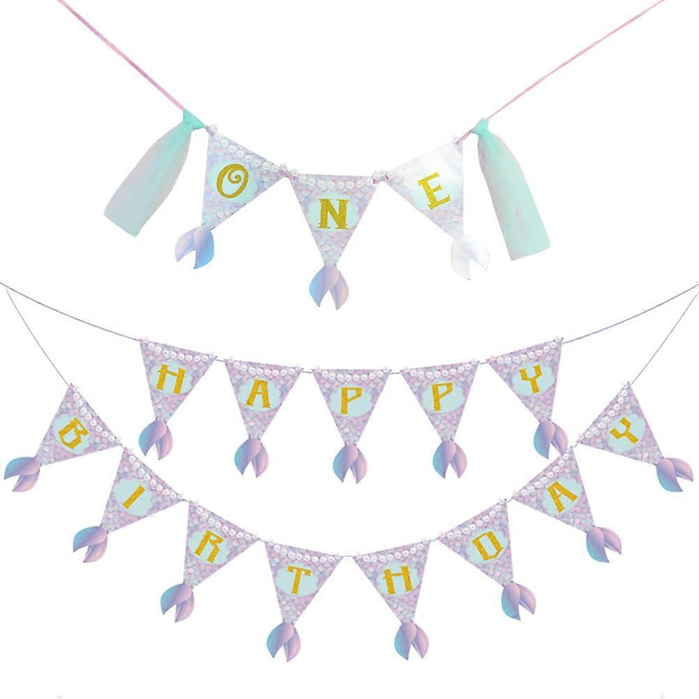 Birthday Decoration For Girls Banner Set Party Theme Matching White Card Paper 2Pcs