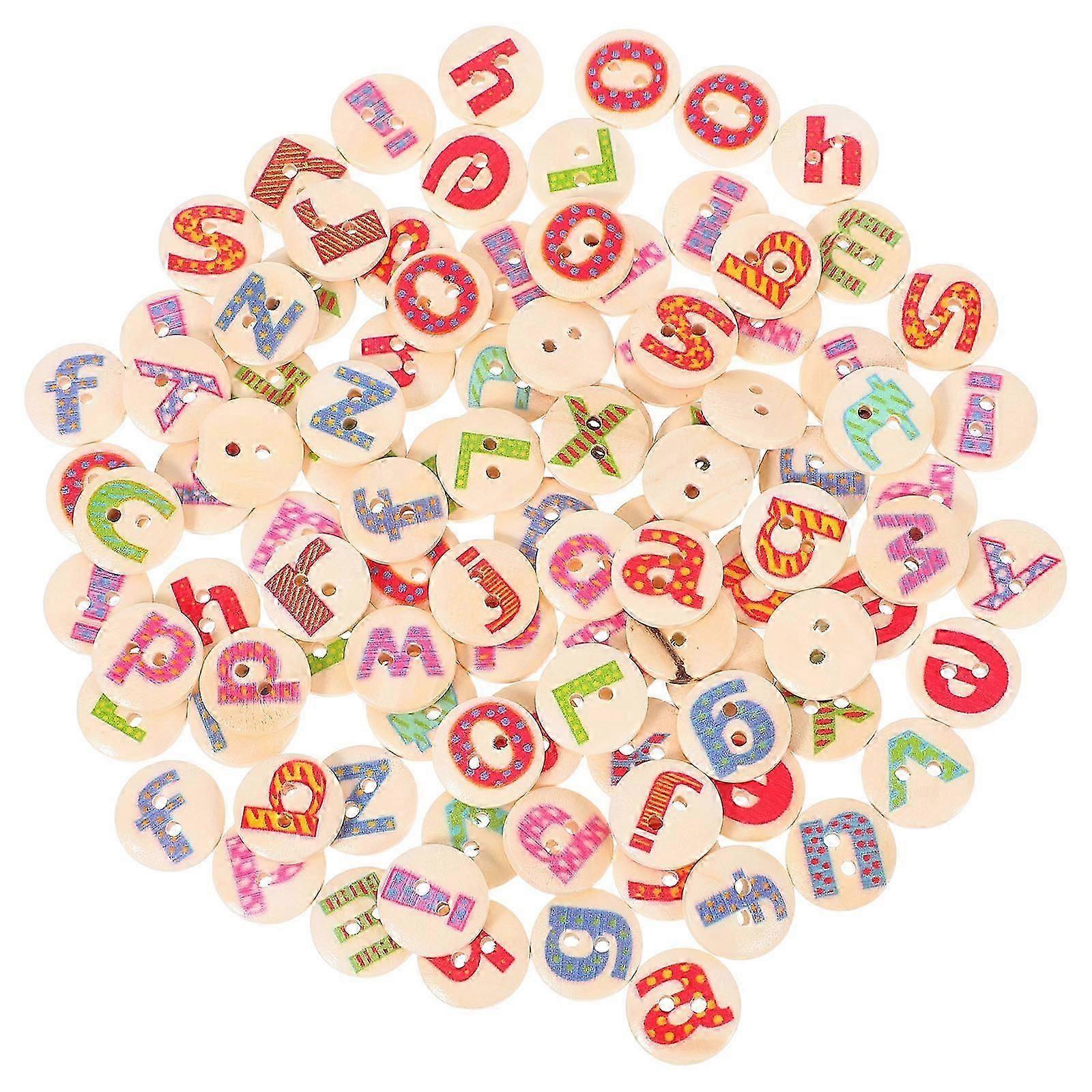 Alphabet Button Two-Hole Buttons Decorative For Crafts Artists 15Mm Wood Material