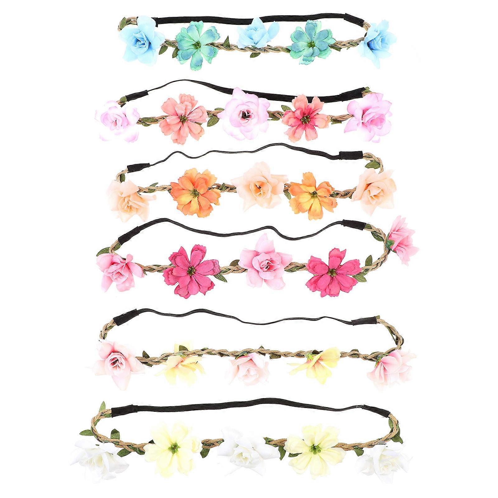 Wedding Flower Crown Bride Festival Photo Props Assorted Color Silk Elastic Design 6Pcs