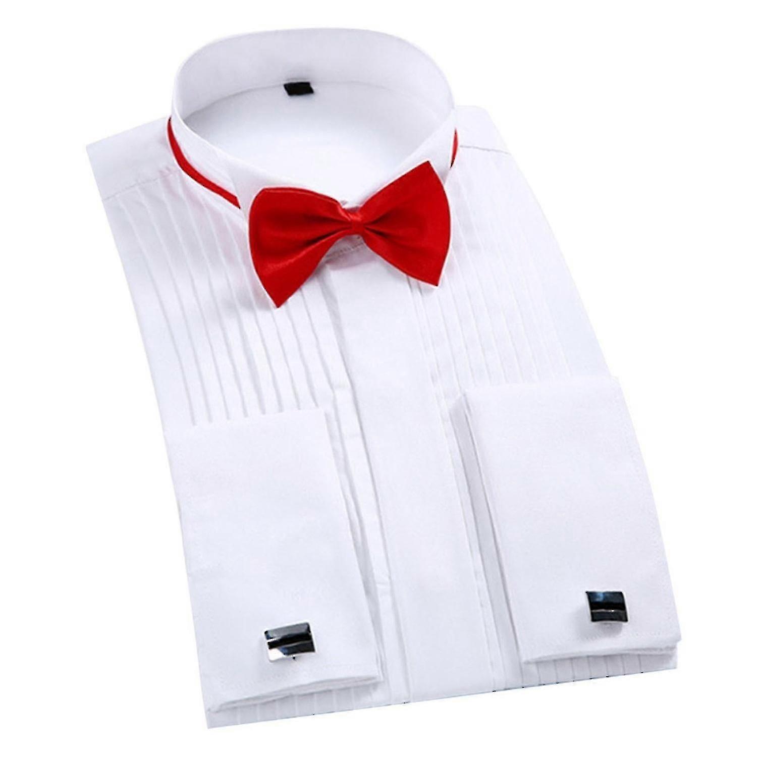 Wedding Tuxedo Shirt Wing Tip Collar With Bow Tie Pleated Shirt Cufflinks Long Sleeve Regular Top