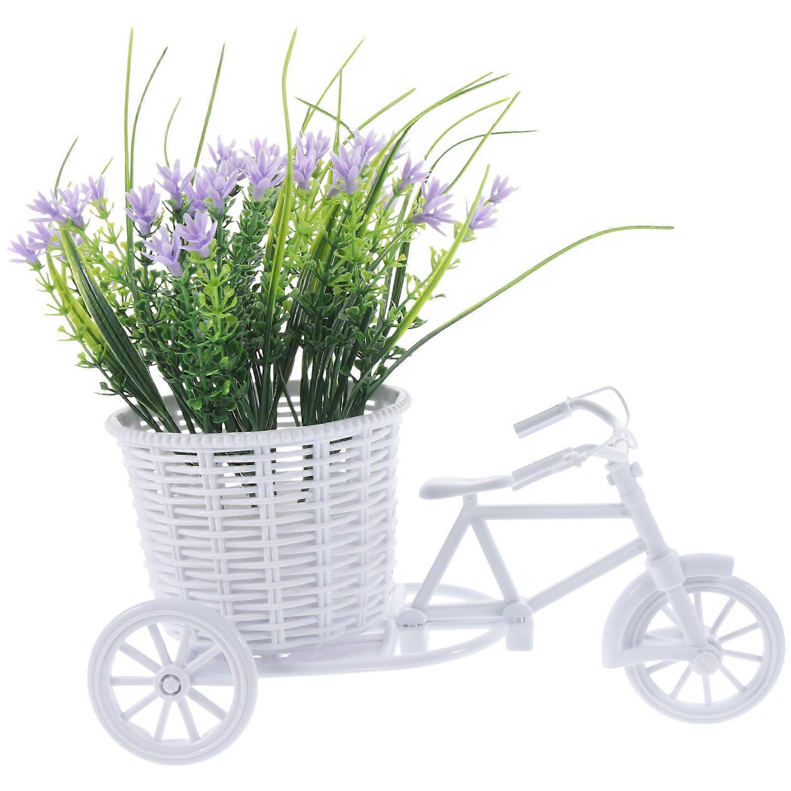 Violet Artificial Flower with Tricycle Basket for Home Decor Plastic Material 6.5 Inches