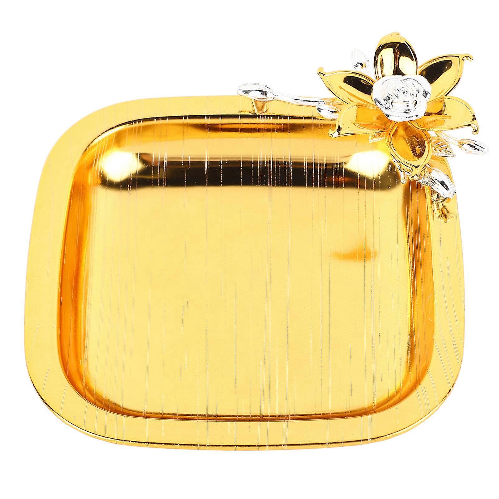 Violet Flower Food Serving Tray Alloy Snack Fruit Tray Compact Dessert Cake Plate for Afternoon Tea Party