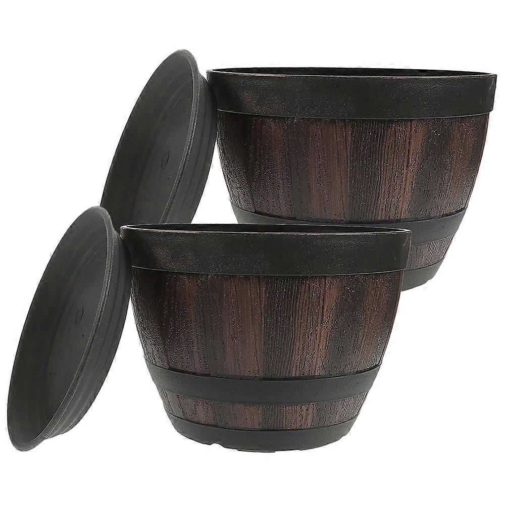 Flower Barrel for Garden Plastic Resin Planter with Tray Retro Style Breathable 2 Sets