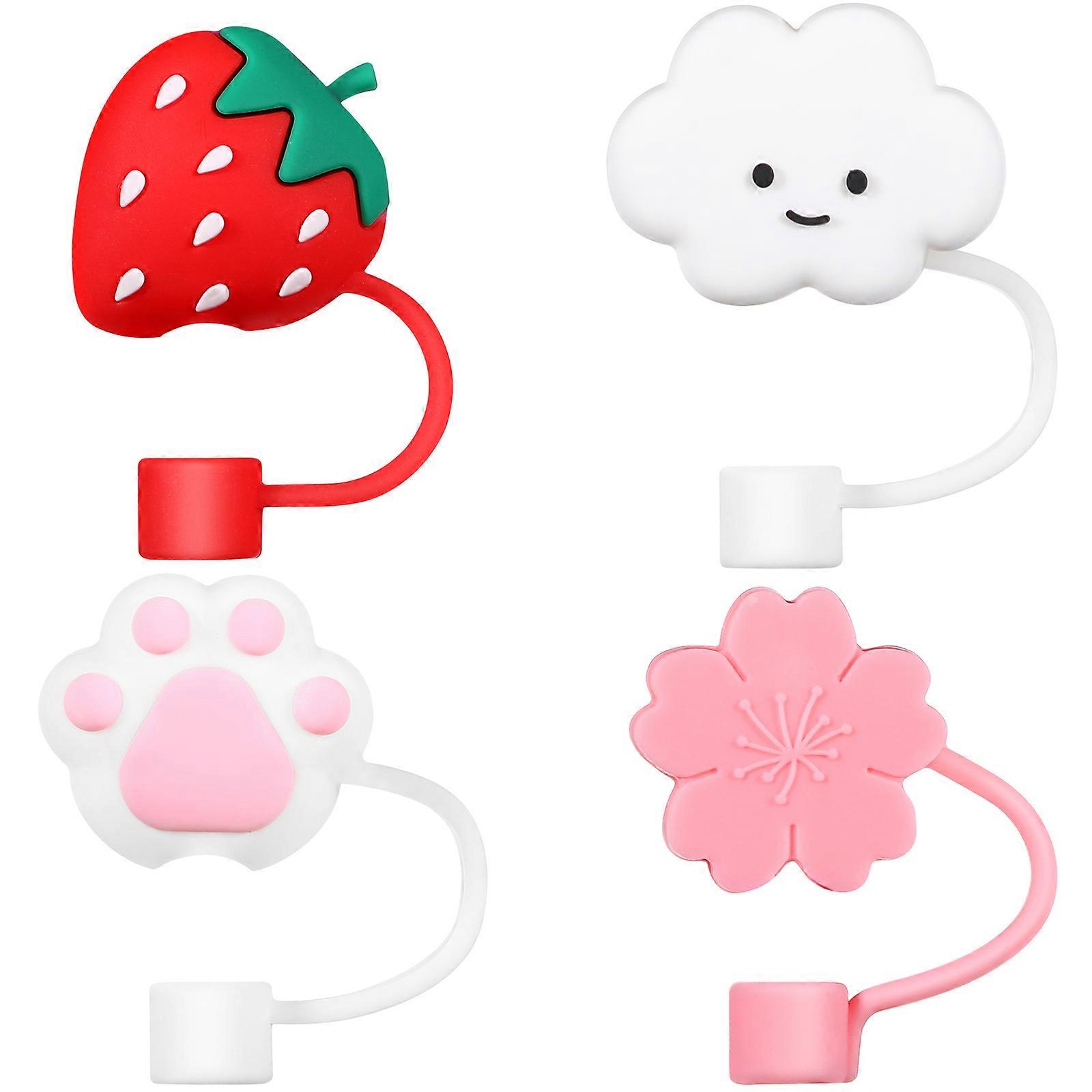 Flower Straw Cover Cap Cartoon Kawaii Dust Proof Drinking Straw Friends 4Pcs