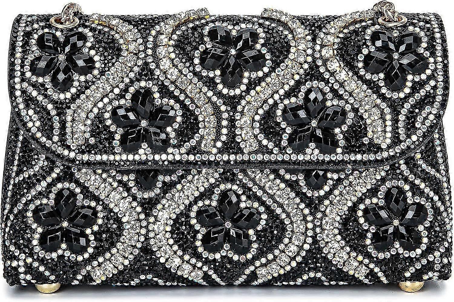 Flower Evening Handbags Chain Strap Square Shoulder Bag Crossbody Bag Crystals Rhinestone Clutch Purse