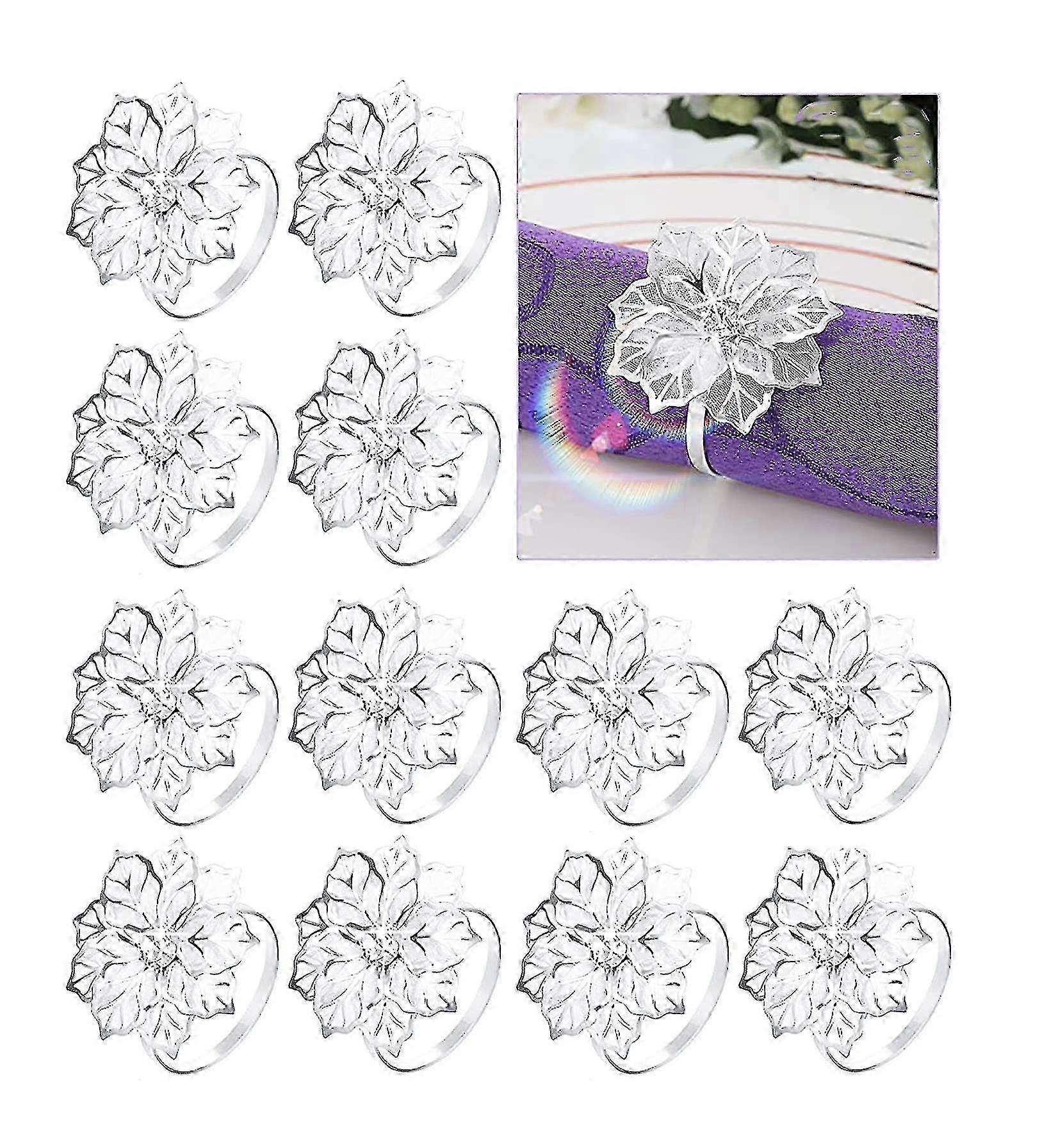 Flower Napkin Ring Buckle, Hollow Flowers Rhinestone Metal Napkin Rings Holder Table Decoration (sliver-12 Pieces)