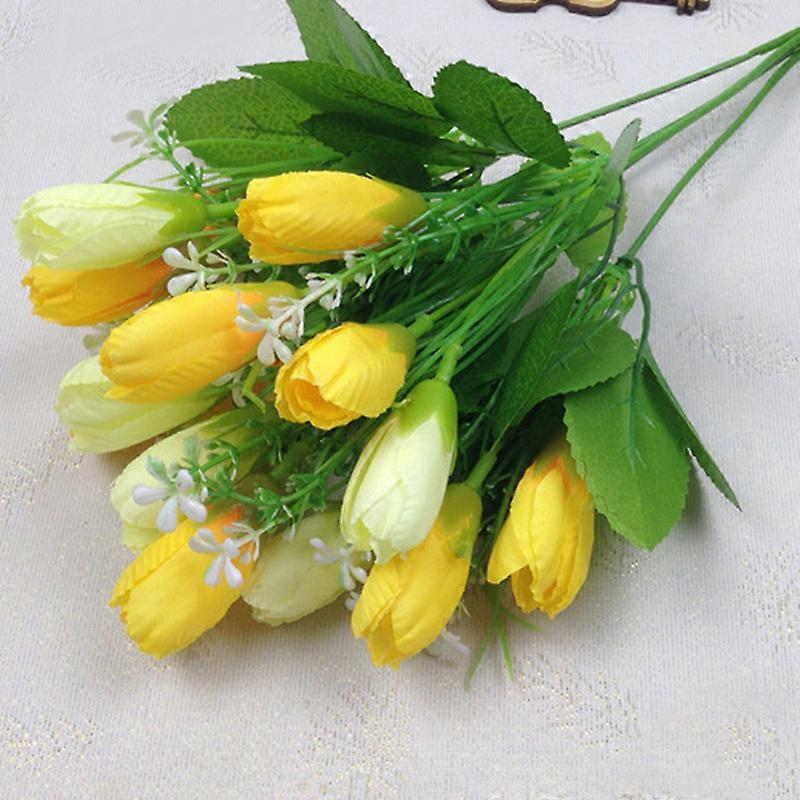 Realistic Silk Tulips, Yellow, 1 Bouquet, 15 Heads