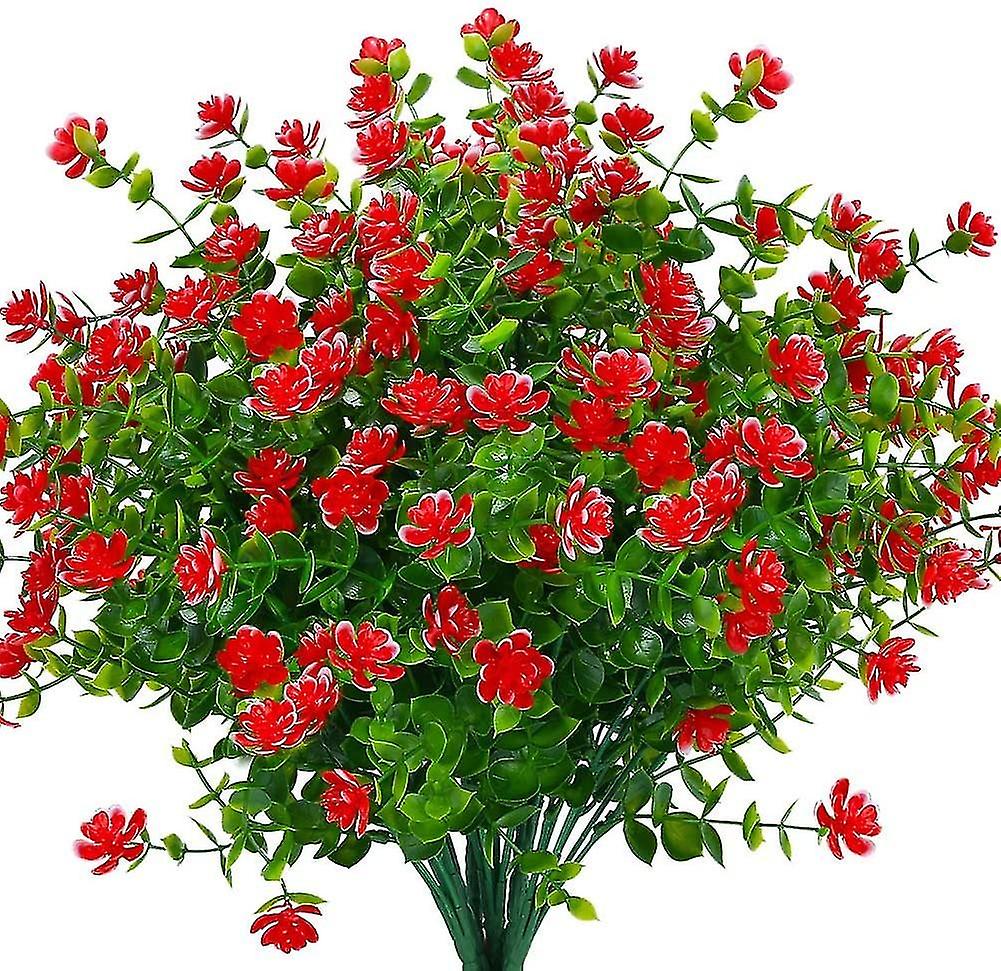 Artificial Fake Flowers Outdoor, Fake Plastic Greenerywedding Farmhouse Decor 8 Pcs Red Lotus