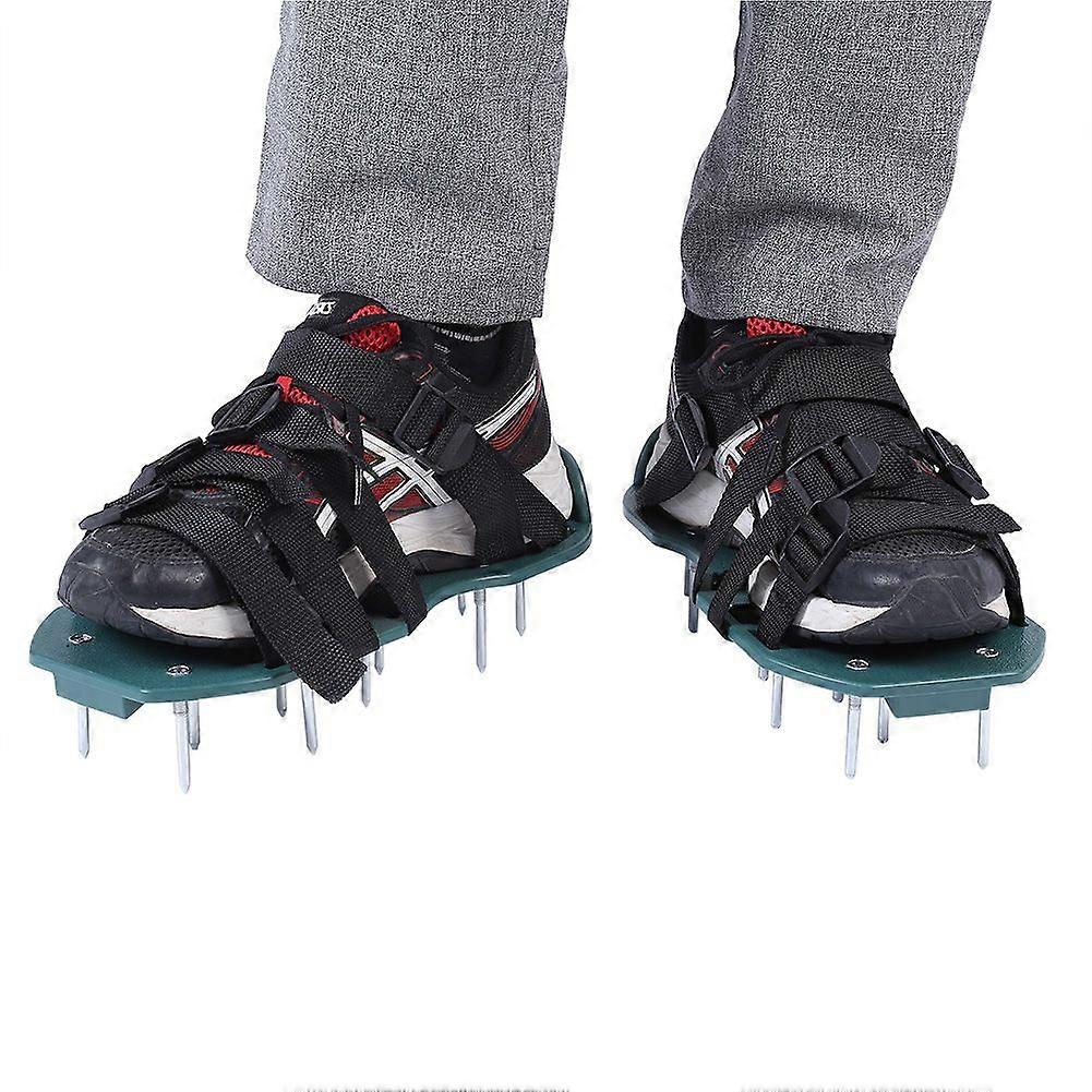 Description:This pair of lawn aerator sandals presses softly into soil, allowing air, water, and fertilizer to penetrate the ground and reach the roots of the grass, providing you a greener, healthier lawn.Features:Lawn aerator shoes opens up hard soil and reduces thatch which is a easy and economical way to improve the health of your lawn.Rugged iron spikes open air passages in compacted soil to help get water, air, and nutrients down to the root zone.Adjustable strap and buckle better secures shoes and makes it fit well with your feet, ensuring that they won't loosen or fall off.Utilize enhanced materials that are harder than common plastic and metal, so that you can rest assure to use it for a long time.It's easy to wear. Just strap on our lawn aerator sandals and take a walk around your yard!Specifications:Condition: 100% Brand NewMaterial: PP Bottom Sole, Nylon Strap, Iron Spike with Chrome PlatingColor: Green and BlackType: 3 Straps, 4 Straps(optional)Spike Quantity: 13pcs for each, 26pcs for a pairSize: Approx. 30*13cm/11.81*5.12inWeight: Approx. 767~775gPackage Included:1 Pair of Lawn Aerator Sandals with AccessoriesNotes:1. Please wipe out the dirt or mud from the sandals, make it dry, and keep them clean after each time used for long service time.2. Please chek the size and specifications carefully before placing an order.3. Please allow 0~1 inch error due to manual measurement. Thanks for your understanding.4. Monitors are not calibrated same, item color displayed in photos may be showing slightly different from the real object. Please take the real one as standard.
