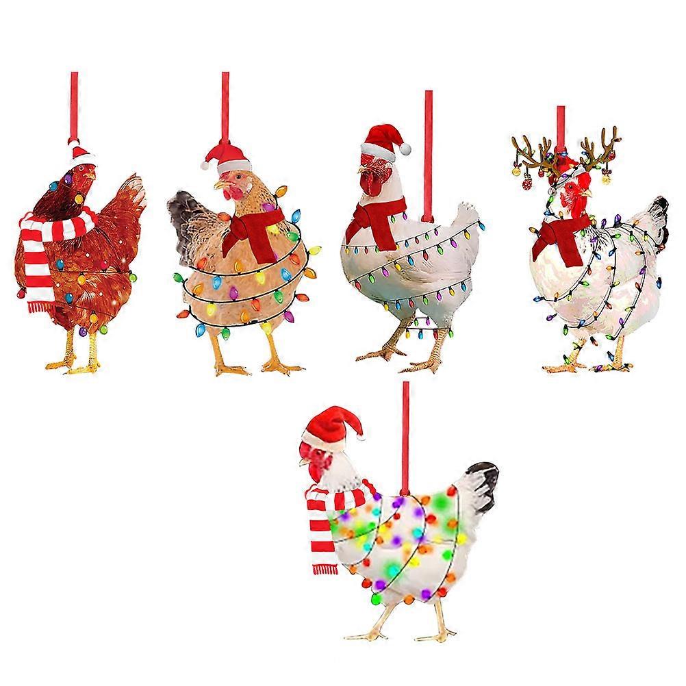 Christmas Themed Chicken Ornaments 5Pcs For Friends Gathering Party Elegant Holiday Decor Assorted Color
