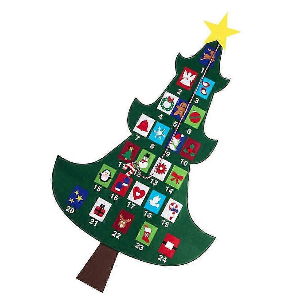 Holiday Decorations Felt Christmas Tree Shape Countdown Calendar Multi Color 150x87x0.3cm For Christmas Celebration 1Set