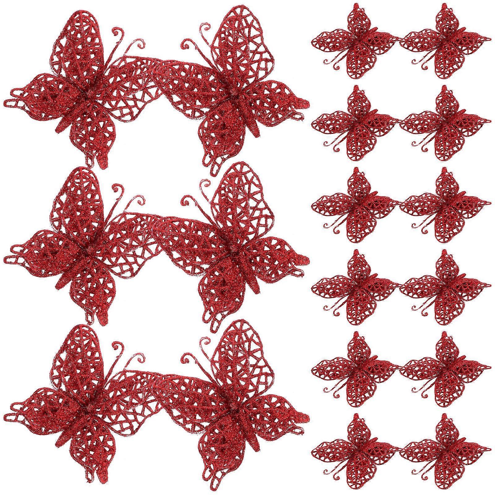Glittery Butterfly Ornaments Christmas Tree Decorations .00X8.00X1.00CM Stage Decorations 24Pcs
