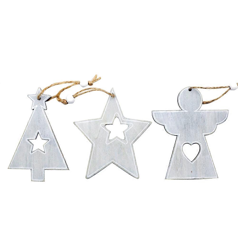 Small Tree Decorations Wood Star Shaped Christmas Home Decor Party Supplies Grey 14x8x1cm 3Pcs