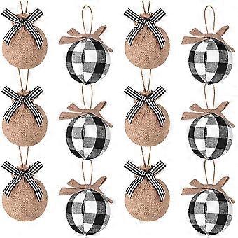 Christmas Tree Ornaments, 12 Pcs 2-1/2 Inches White Black Buffalo