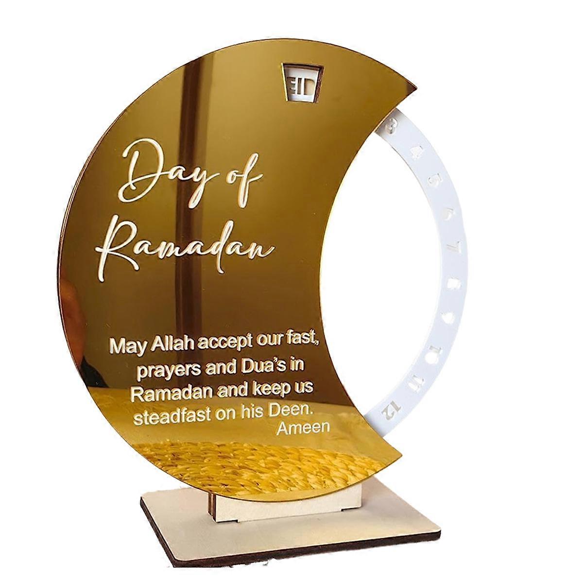 Mubarak Acrylic Moon Ornament Ramadan Table Decoration Gold+White