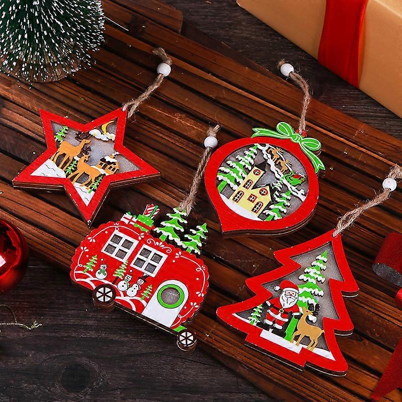 New Christmas decorations creative hollow wooden pendant gift luminous car small tree ornaments