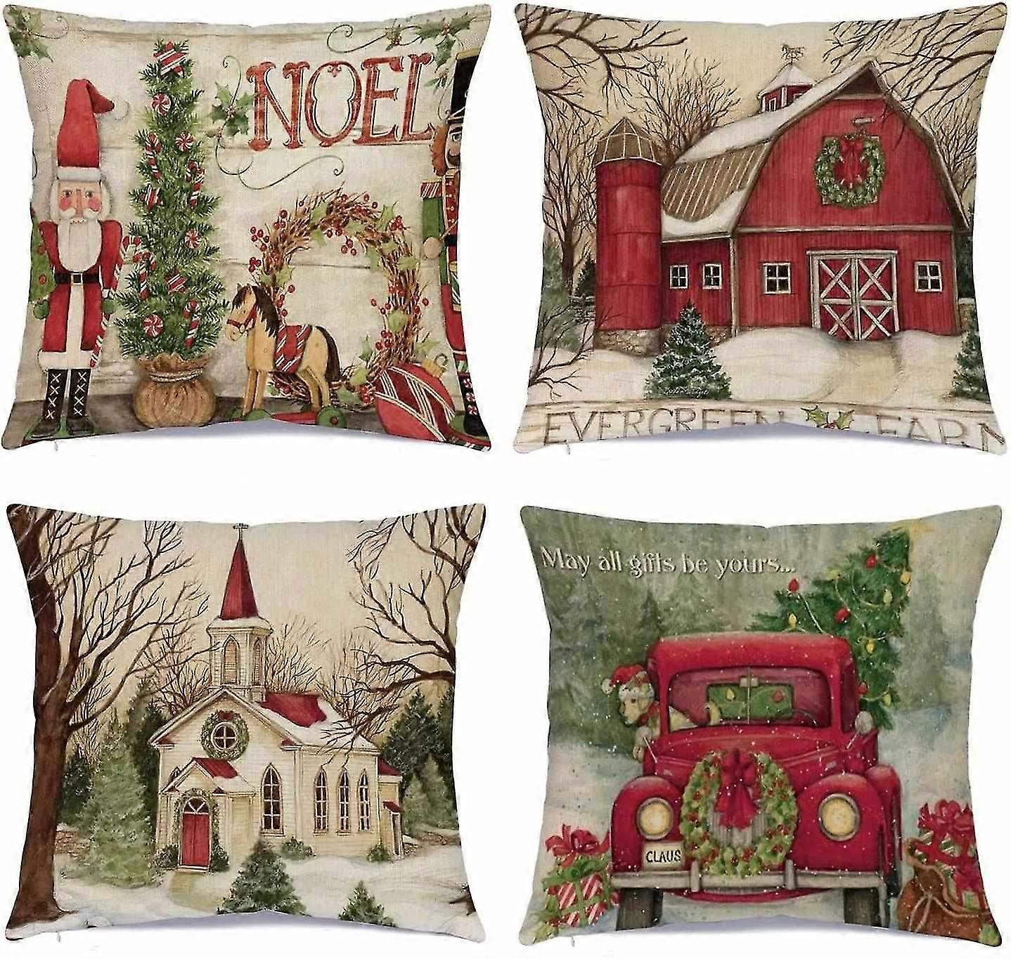 Christmas Decorations Christmas Pillow Covers 18 X 18 Inches Set Of 4 - Xmas Series Cushion Pillow C