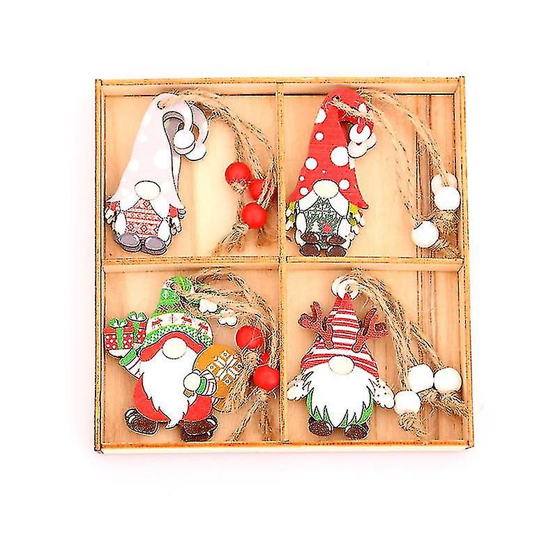 Christmas Decorations In A Box Of 12 Small Wooden Christmas Tree Hangings @bugu