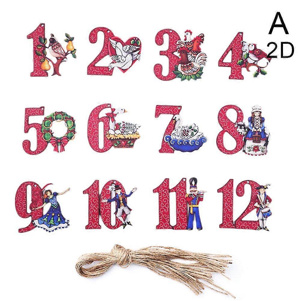 Christmas Decorations 24 PCS 12 Days Vintage Rustic Wooden Hanging Decorations