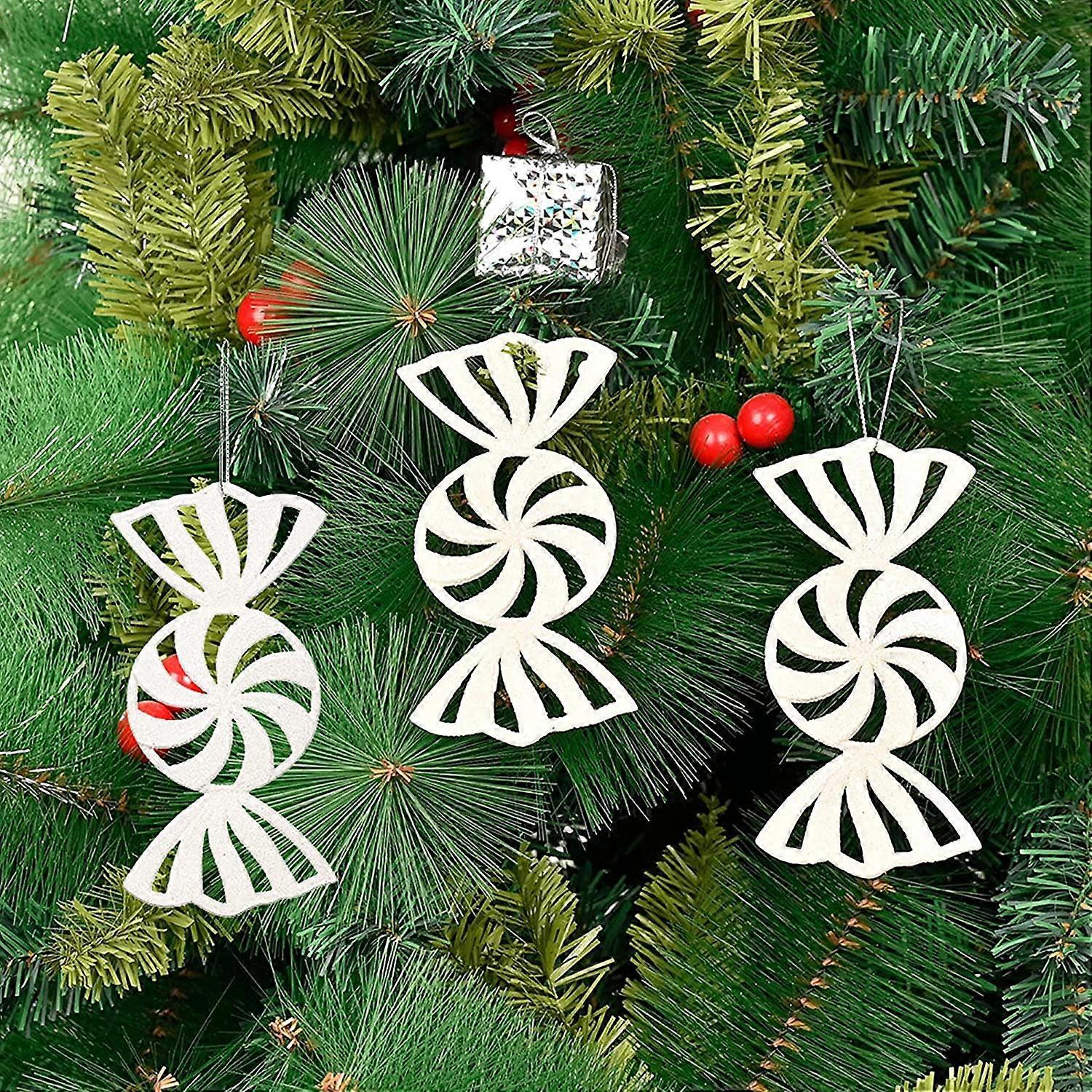 White Christmas Tree Decorations and Ornaments - Snowflake Candy Christmas Tree Decor - Cute Christmas Ornaments Included Ribbons for Hanging (Set of