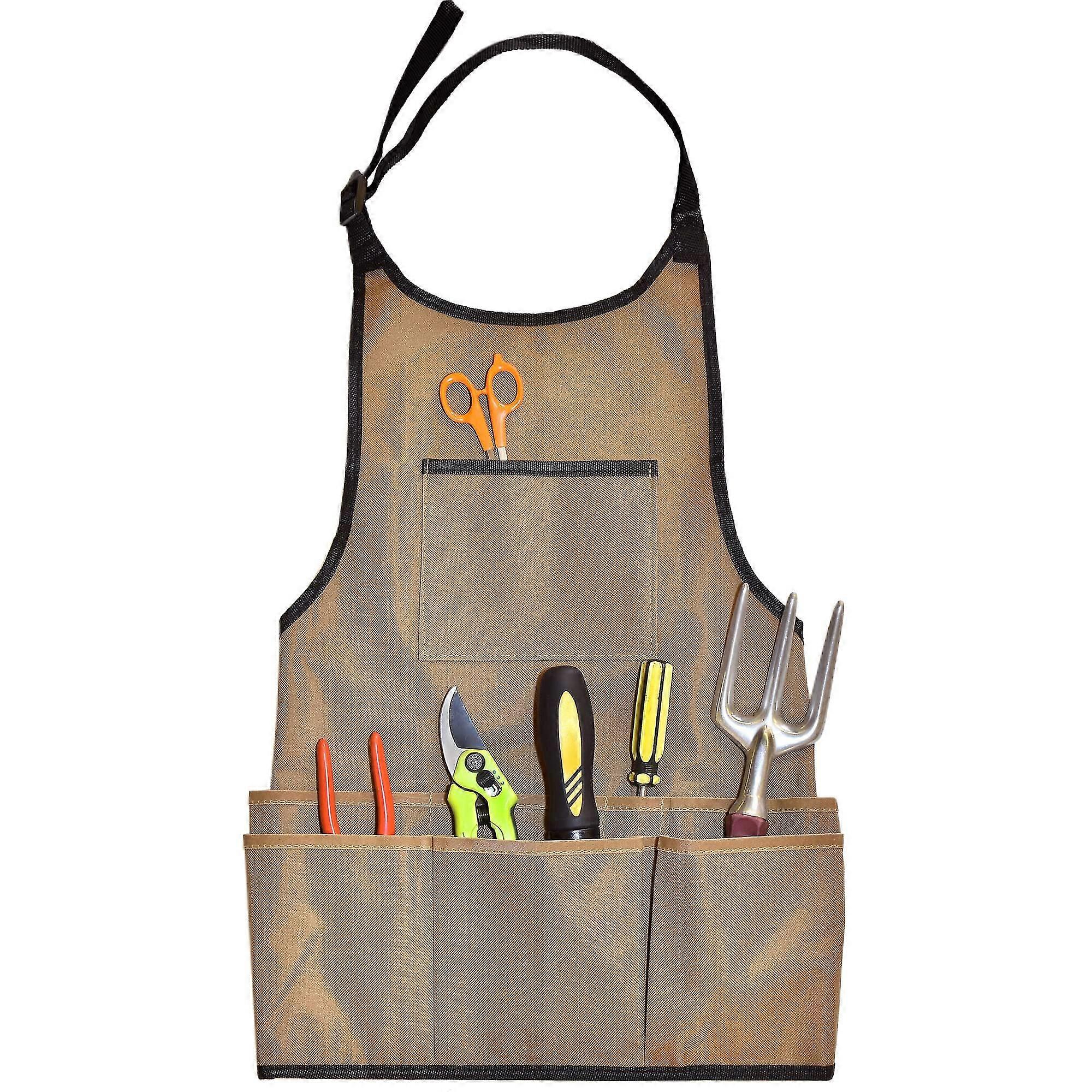 Gardening Apron With Pockets On Chest And Belt For Gardening Tools, Accessories And Fasten Belt With Adjustable Neck