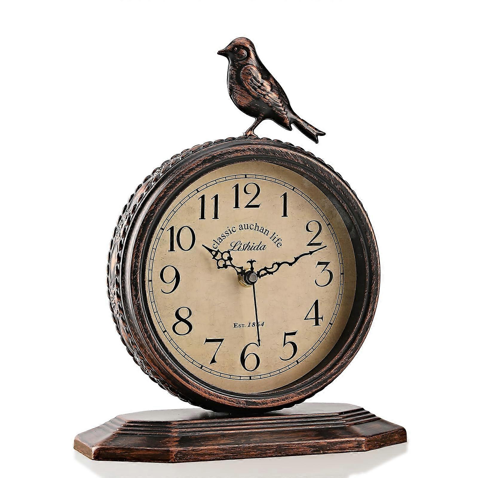 8-Inch Antique Mantel Clocks with Bird, Retro Silent Table Clocks for Living Room, Bedroom, Office, Easy to Read