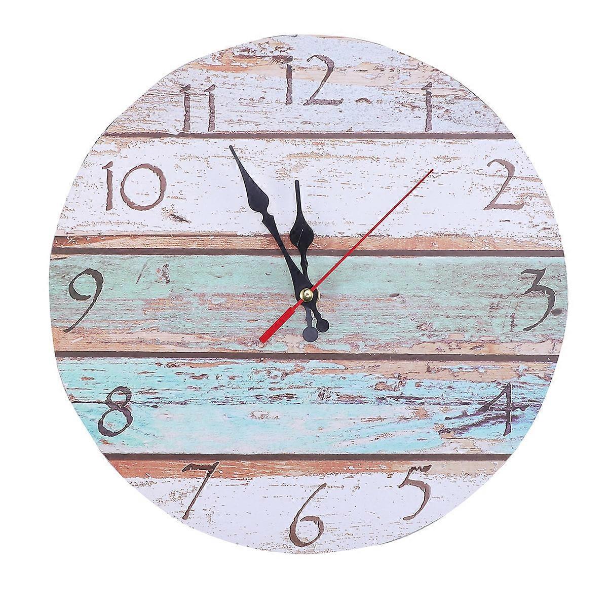 Wall Clock Vintage Decorative Clock For Living Room Mediterranean Wood Round Shape 11.8x11.8x1.0in 2Pcs