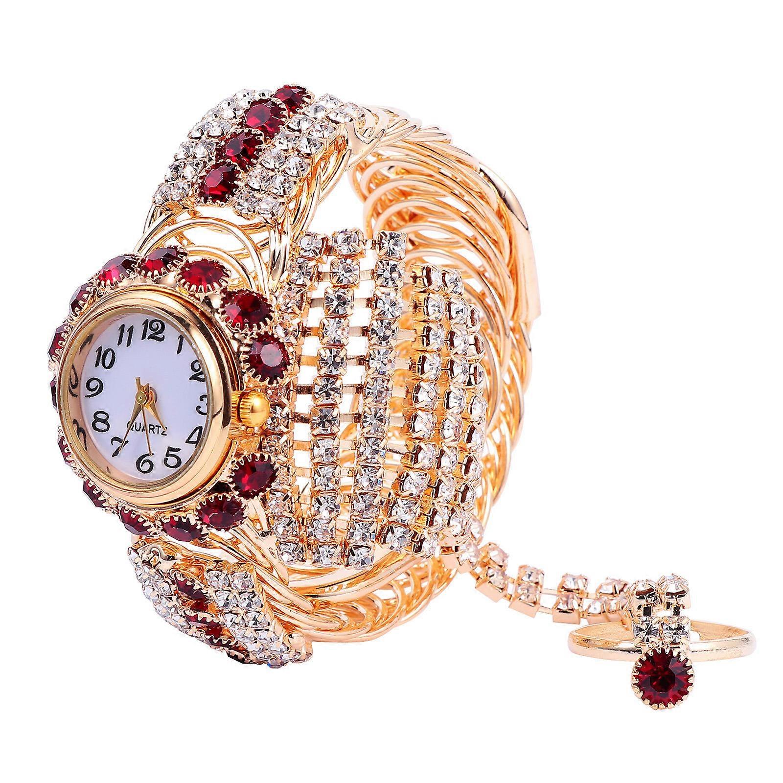 Fashion Alloy Watch for Women with Stainless Steel Quartz Movement Red Lightweight Comfortable Daily Wear