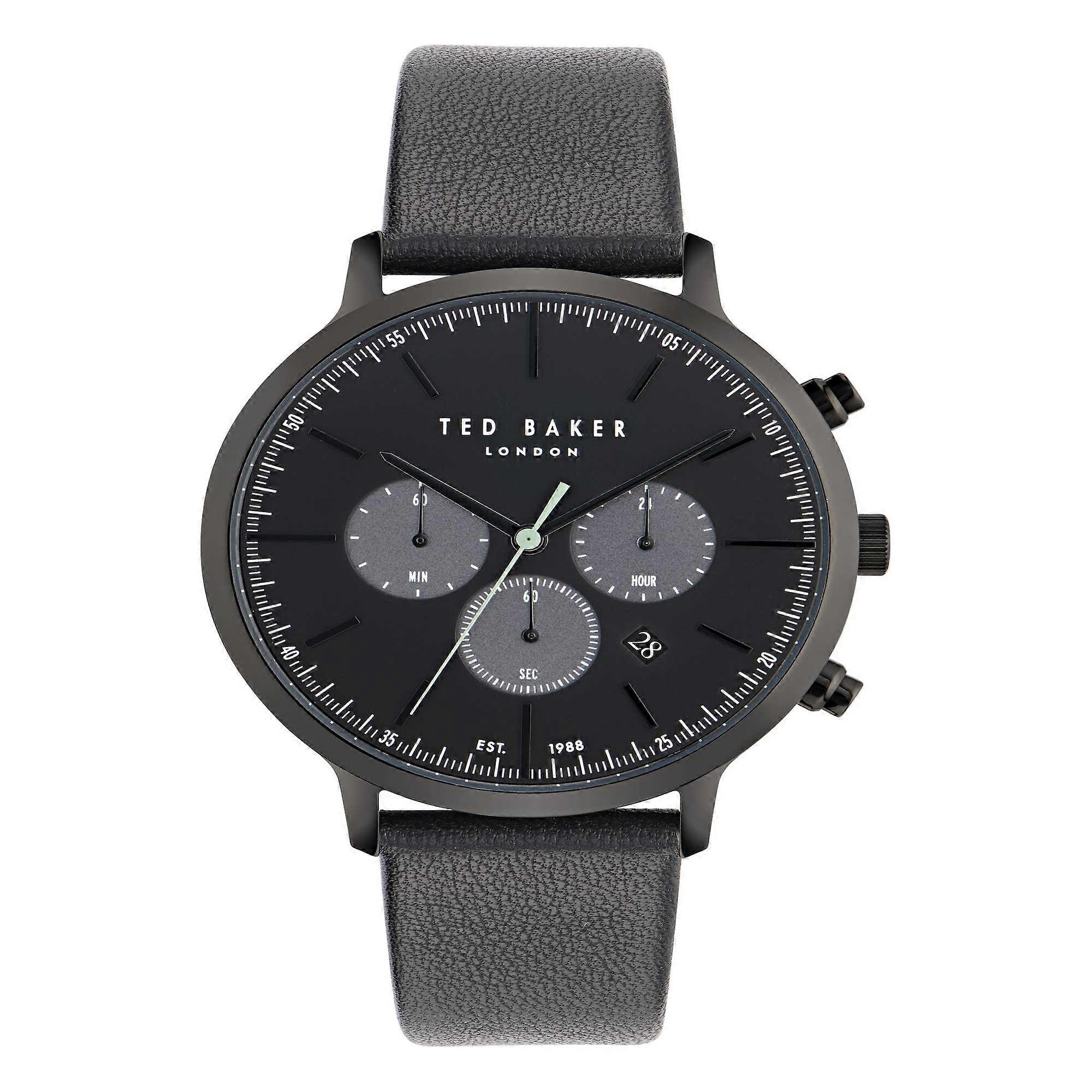 Ted Baker Gents Timeless Black Leather Watch BKPHAF404 Experience the elegance of time with the Gents Timeless Black Leather Watch BKPHAF404, a sophisticated piece that embodies luxury and modernity. Crafted by Ted Baker, this remarkable chronograph watch showcases a striking all-black design that effortlessly complements any outfit, whether for business or casual occasions. The Haarvin collection offers a perfect fusion of style and functionality. Collection - HAARVIN Gender - Gents Case Material - Stainless Steel Case Colour - Black Case Shape - Round Case Dimension - 44 mm Case Height - 10. Its black dial displays a sleek and minimalist aesthetic, ensuring that it remains a timeless accessory. The durable mineral glass crystal not only adds to the watch's sophistication but also protects it from scratches and daily wear. Comfort is paramount with the included black leather strap, designed to sit perfectly on your wrist. The strap is made from high-quality leather, offering both luxury and durability. With a water resistance of up to 50 meters, you can wear this watch confidently in various settings, whether you’re at a business meeting or enjoying a night out. Stylish Versatility: The all-black color scheme ensures this watch pairs flawlessly with any outfit, making it suitable for any occasion. Durable Design: With high-quality materials and a robust build, this watch promises longevity, making it a wise investment in your accessory collection. The Gents Timeless Black Leather Watch BKPHAF404 is packaged exquisitely in Ted Baker’s signature style, complete with a gift bag, box, and certificate of authenticity. Elevate your style and make a statement with this stunning watch that redefines luxury and elegance.