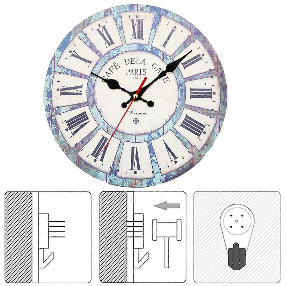 Blue Silent Wall Clock in Country Style Retro Design for Home Decor with Wood Material Fits Any Room 10.6 Inches