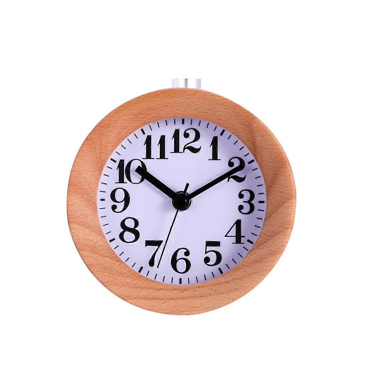 Decorative Clock Creative Round Classic Wooden Silent Desk Travel Alarm Clock for Office Bedroom with Nightlight 1Pack