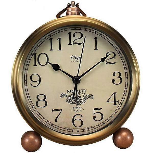 Metal Golden Table Clock, Retro Vintage Non-Ticking Small Alarm Clock, Battery Operated Silent Quartz Movement Hd Glass