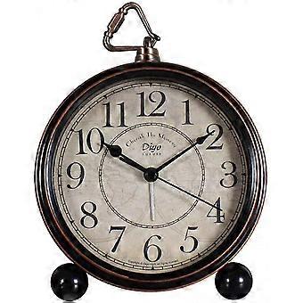 About this item GOLDEN TABLE CLOCK: Crafted of metal with an golden finish,simple but elegant accent, bring home furnishing high-end elegant atmosphere. INDOOR DECOR: Metal frame with golden finish, HD glass, easy to read. Great for indoor decoration. SILENT: Non-ticking, quiet and smooth sweeping quartz movement and second hand, ensure a good sleep and best working environment EASY TO READ: Large numerals analog clock dial, easy to use, easy to read, perfect for kids or seniors BATTERY OPERATED: Require 1*AA Carbon Zinc Battery to power the clock(Not included).