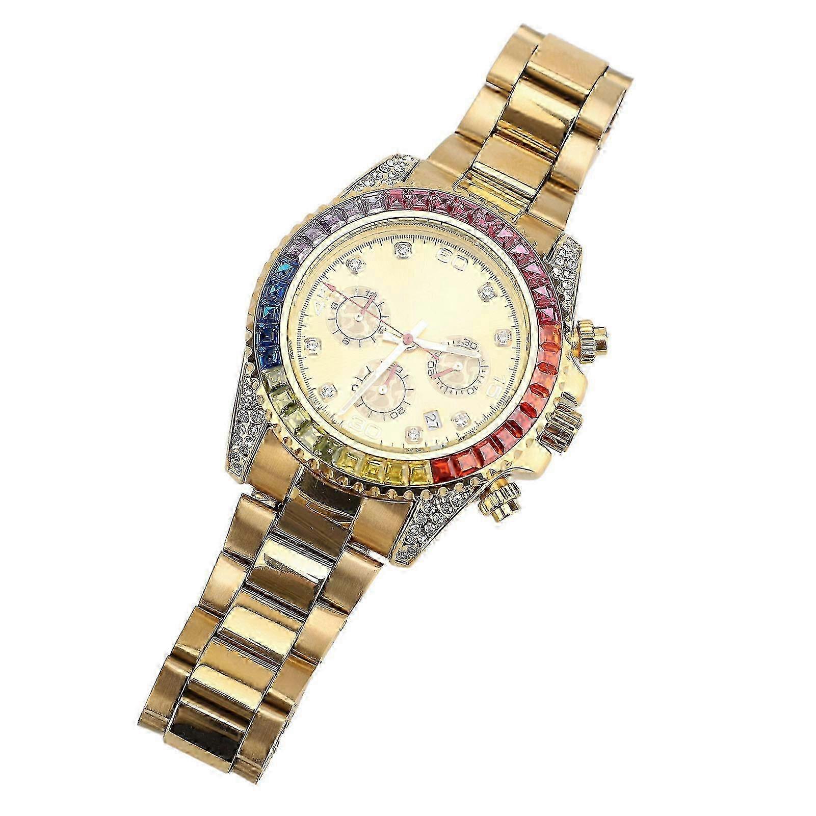Men Analogue Quartz Watch Chronograph 30m Water Proof Luminous Solid Stainless Steel Fashion Watch for Daily Use Gold