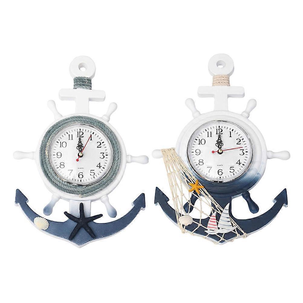 Wall Hanging Clock Decorative Mediterranean Style Nautical Clocks Wall 34x23cm Bright Color 2Pcs